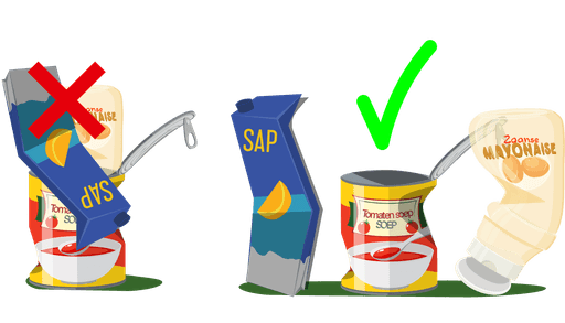 Stop geen verpakkingen in elkaar. Houd bijvoorbeeld plastic verpakkingen en blikken apart.